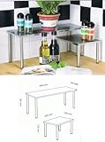 Küchenregal Set Edelstahl 2 teiligSie erhalten hier 2 sehr schöne Edelstahlregale für die Küche. Ideal für Gewürze oder Kräuter.Die Füße sind mit weichen Untersetzern versehen, so dass keine Kratzer auf der teuren Arbeitsplatte entstehen.Großes Regal zirka 180x450x160mm Höhe/Breite/TiefeKleines Regal zirka 130x220x160mm Höhe/Breite/Tiefe